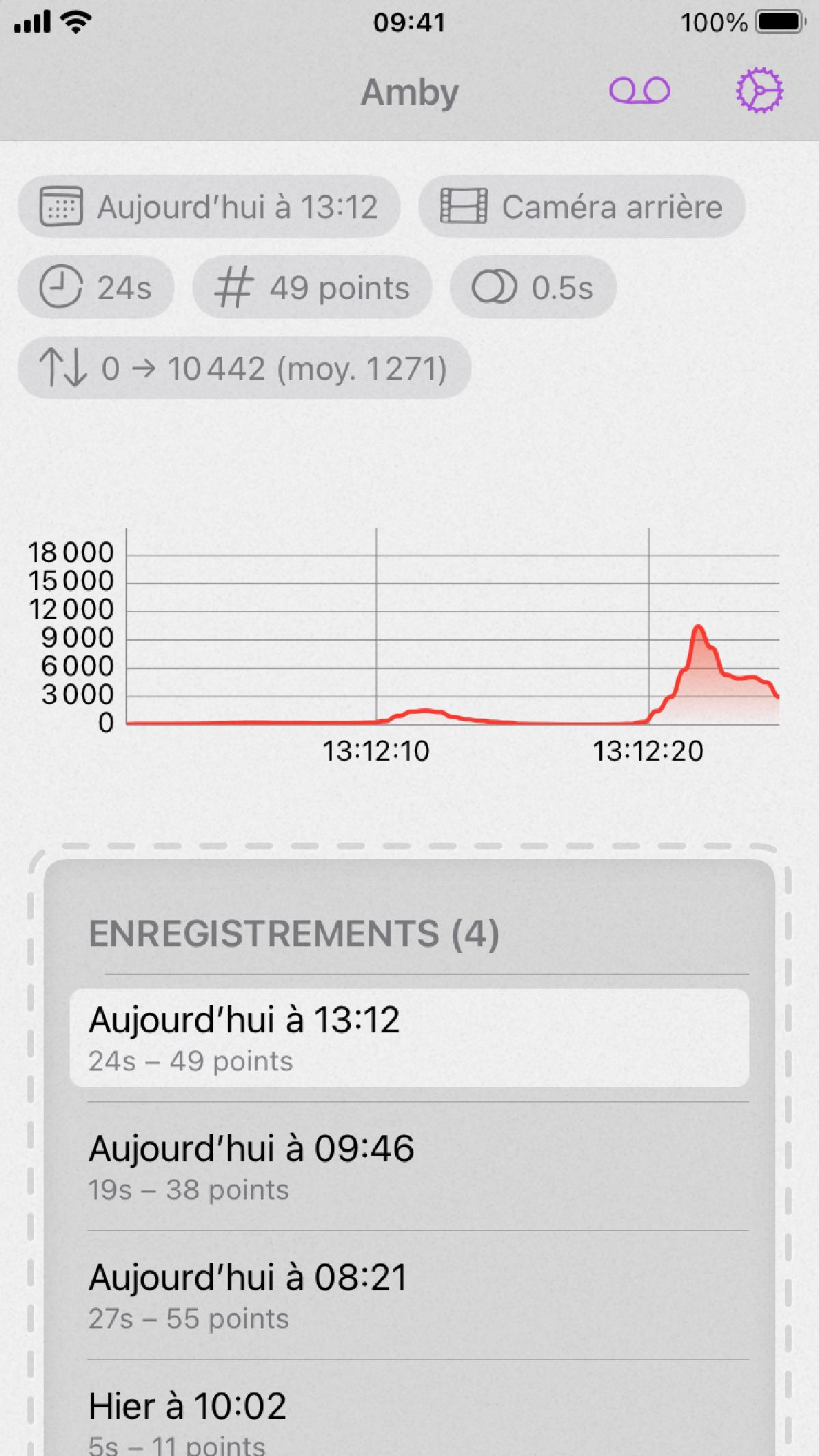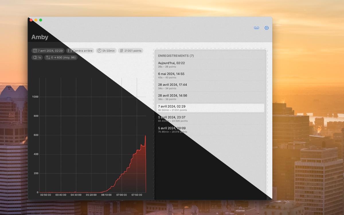 Faites de la place pour Amby, un enregistreur de niveau lumineux. Bien que plusieurs applications existent déjà sur l’AppStore pour mesurer un niveau lumineux, cette app permet d’enregistrer pendant plusieurs heures si besoin, et étudier l’évolution.