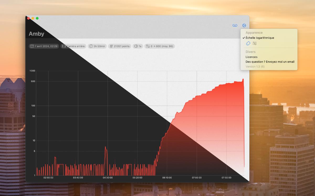 Catalystexiste, ça serait du gâchis de ne pas faire une version macOS au passage - uuurh, les écarts d’intensité lumineuse pendant une nuit et matinée complètes sont trop extrêmes et le graphique est illisible, ajoutons une échelle logarithmique