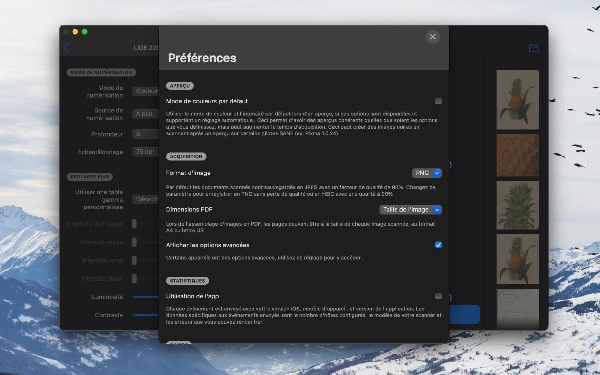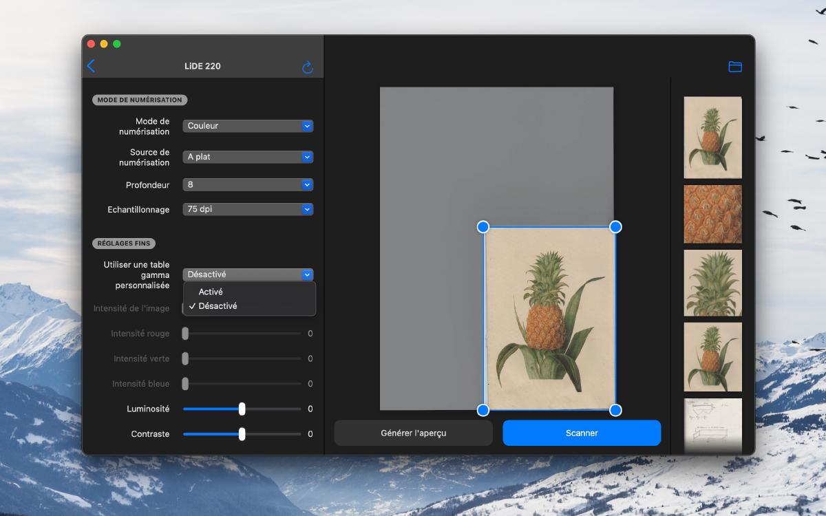 - quelque chose comme des préréglages de scan, qui pourraient permettre par exemple de se souvenir des derniers réglages utilisés pour chaque scanner
