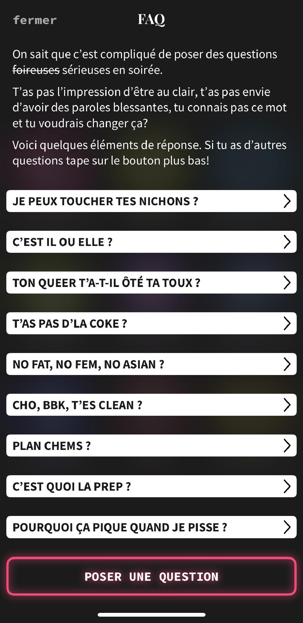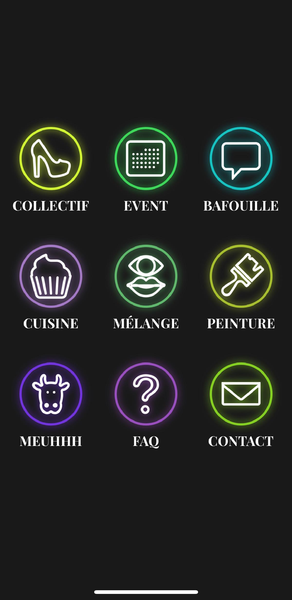 Née après la création de notre collectif en 2016, l’app est venue d’un besoin omniprésent qu’il nous fallait absolument en avoir une. Son premier jet, débuté en 2018, avait un seul but en tête : être la boîte à meuh indispensable remplie des répliques de chacune.