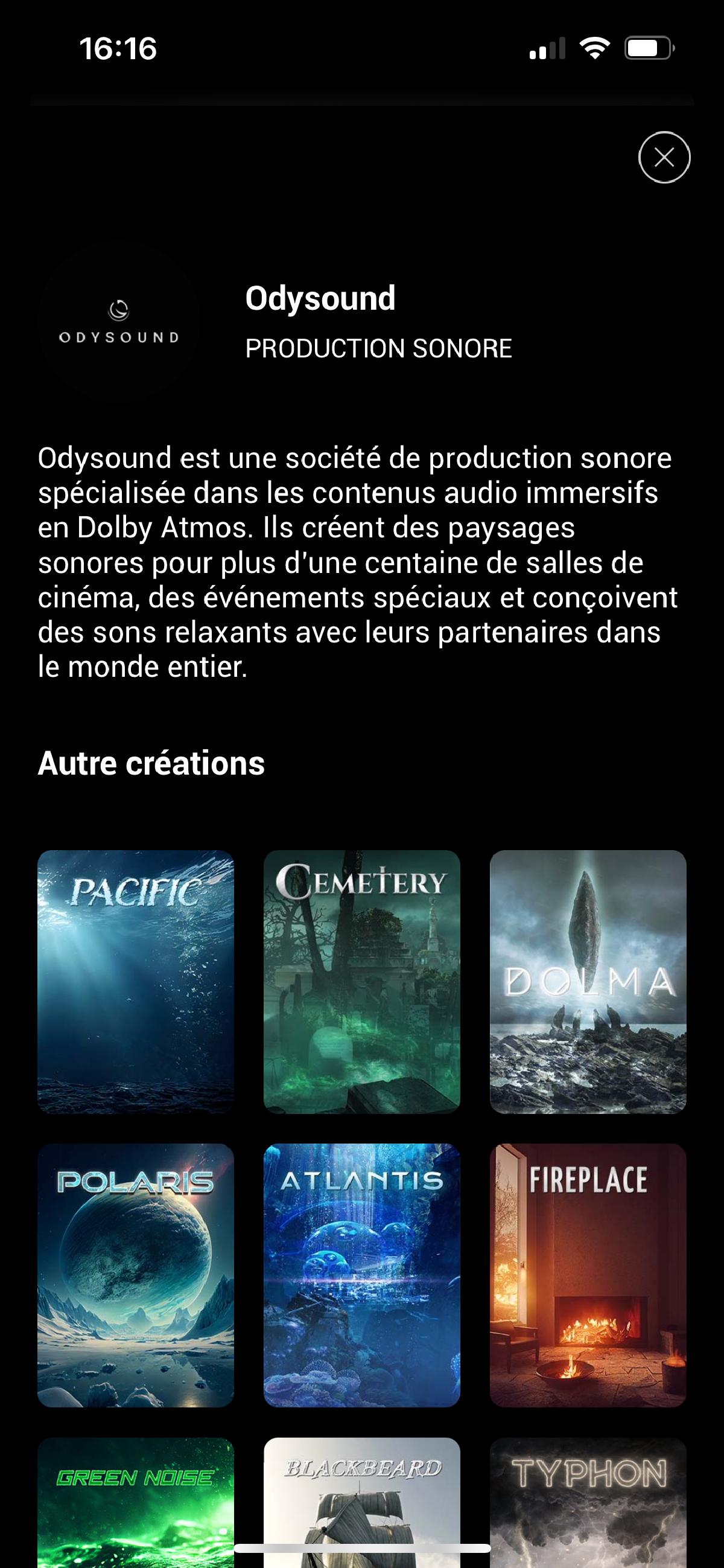 LostMechanics m’a sollicité en 2018 pour développer une application AppleTV pour leur nouveau client : Odysound. Capitalisant sur les talents de leurs concepteurs sonores, l’application visait à proposer un catalogue de sons ambiants en qualité Dolby Atmos. Les utilisateurs auraient accès à une liste de contenus facilement navigable, comprenant chacun au moins trois pistes audio distinctes, bouclant de manière transparente et aléatoire aussi longtemps que nécessaire. Bien que le concept en lui-même soit simple, la mise en œuvre présentait des complexités inhérentes, dont la génération aisée de contenu HLS tout en préservant la qualité Atmos, la lecture de contenu à partir d’un CDN tout en assurant la protection des fichiers audio et le bouclage de plusieurs pistes sans interruption ni clics audibles.