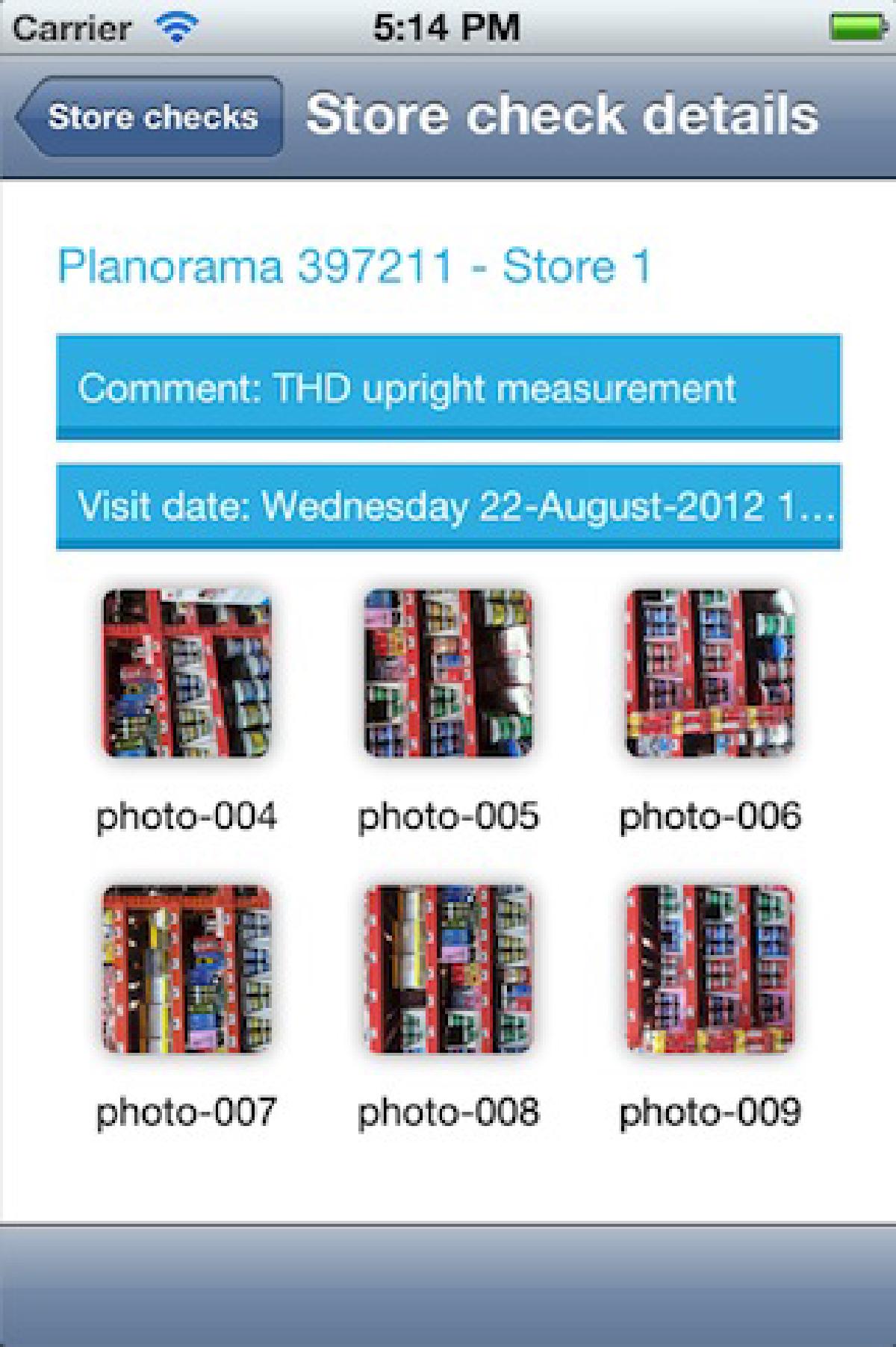 Les représentants de marques utilisent cette application pour photographier les rayons liés à leurs produits. En retour, ils obtiennent les statistiques de vente et de présence souhaitées, rendues possibles par le serveur d’analyse de photos de Planorama.