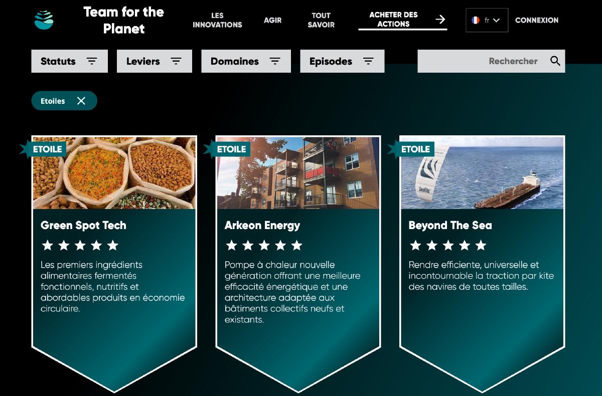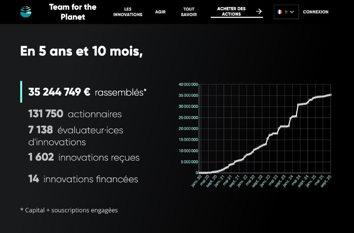 Depuis 2019 Team for the Planet rassemble tous ceux qui veulent lutter contre le dérèglement climatique, leur permettant d’acheter des parts dans la société, qui utilise ces fonds pour financer recherche et projets commerciaux. Elle rassemble depuis plus de 130 000 personnes, créant par la même occasion une communauté dynamique.