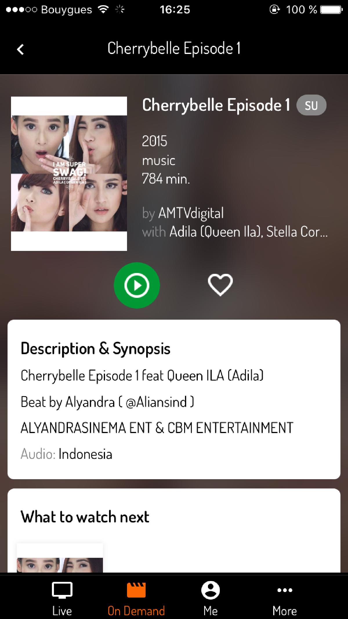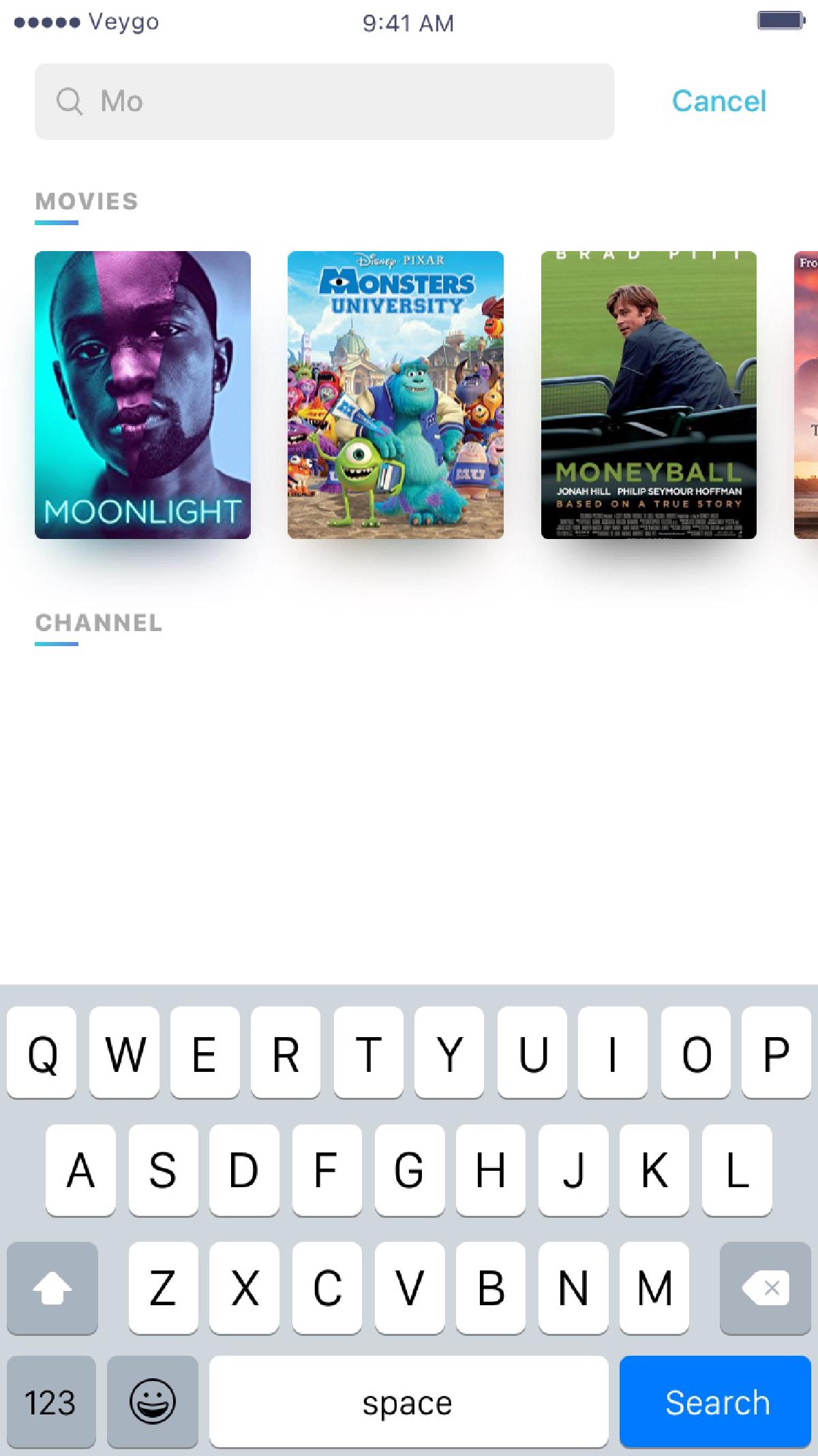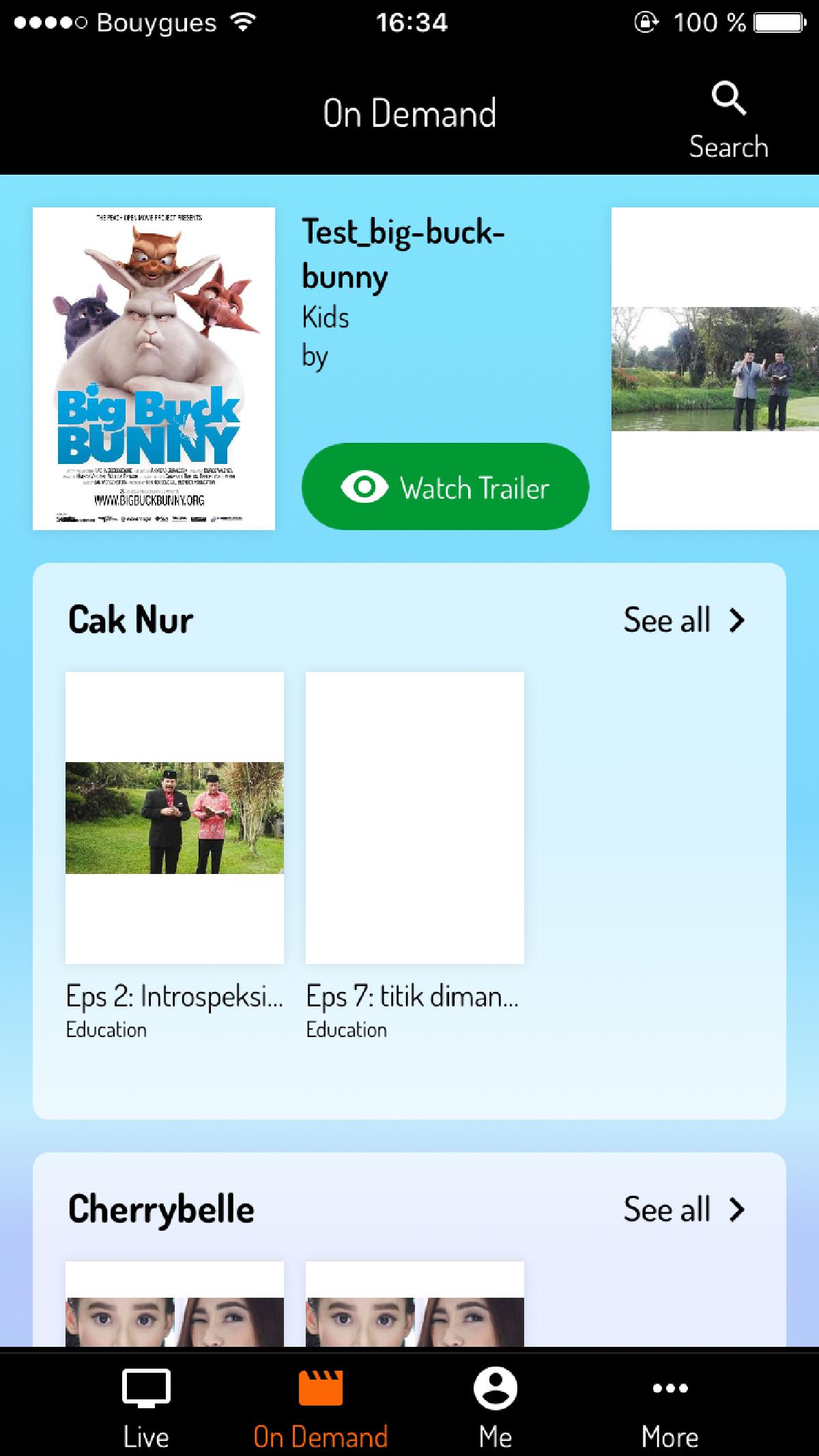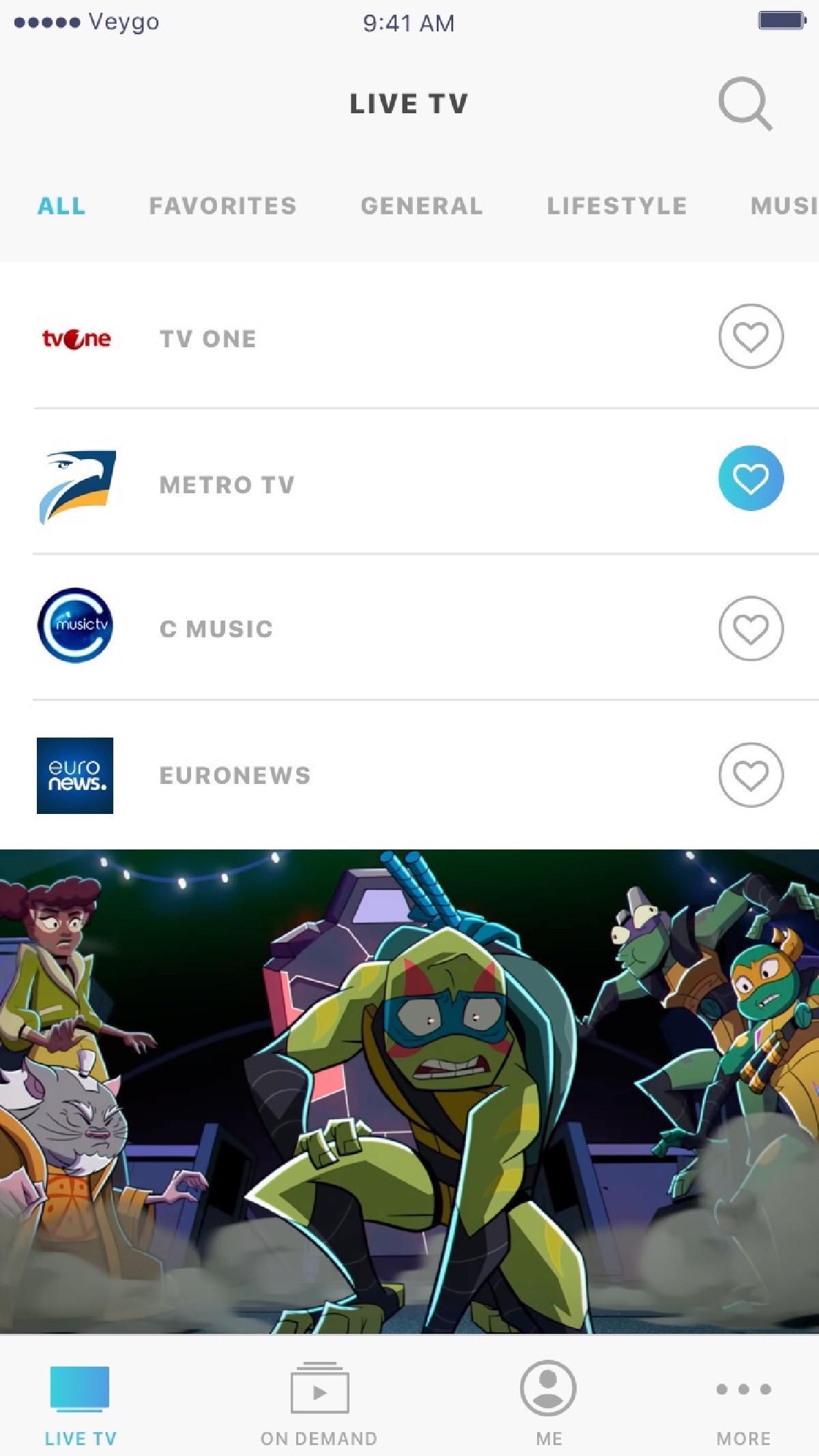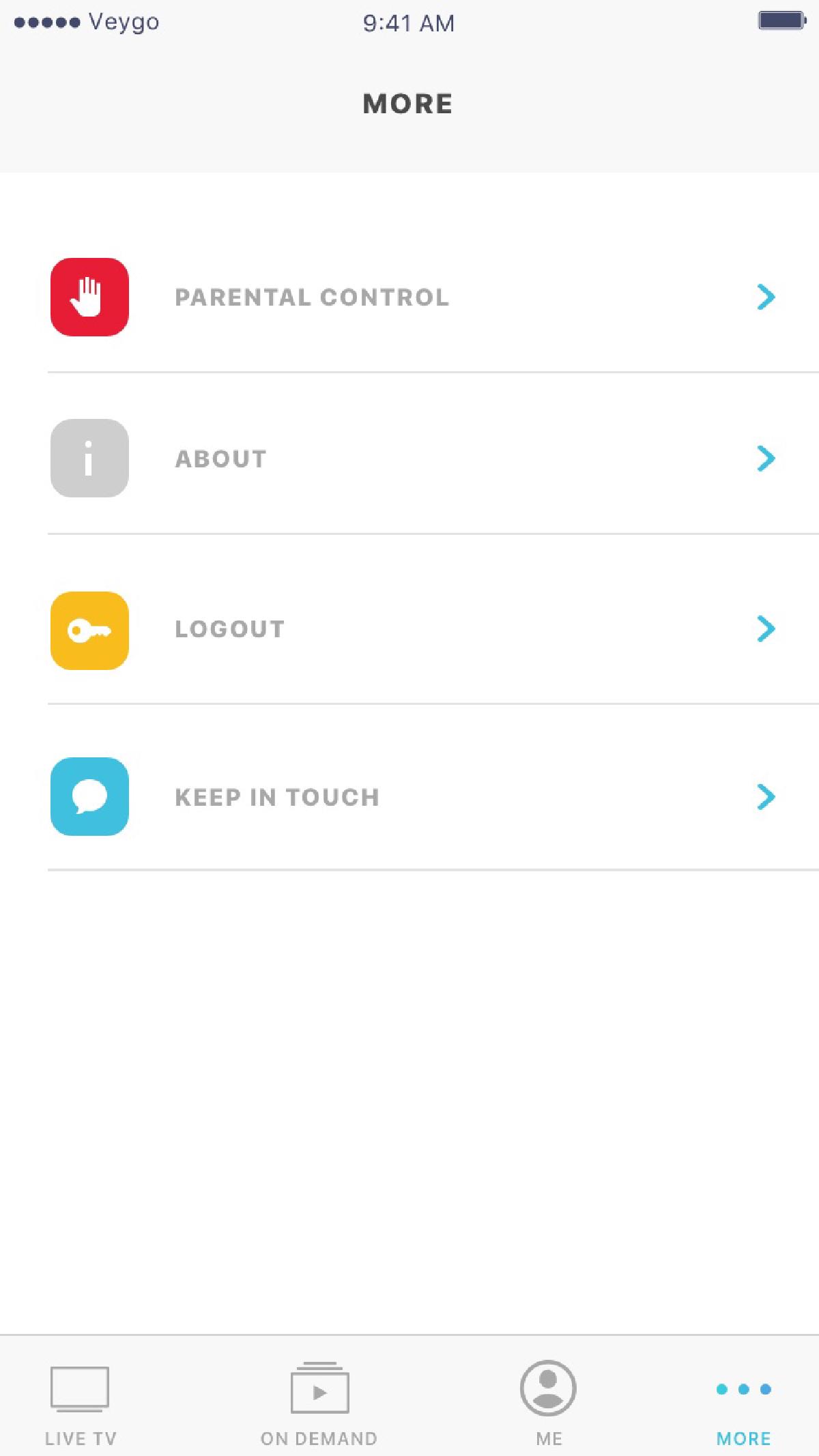 Avec ma participation, nous avons pu étendre l’offre de Veygo en créant une application iPhone et iPad en marque blanche utilisant leur SDK mobile, créant une application riche dotée d’une interface utilisateur fluide et grandement adaptable au besoin client, à une époque où iOS 11 et l’iPhone 5S étaient encore courants. Cette application permet la création de compte, l’affichage du catalogue et de l’EPG des chaînes en direct, l’ajout de rappels, le streaming VOD et téléchargements hors-ligne, la mise en favoris, etc. Parmi les clients de cette app, on trouvait le groupe Aldo Maru en Indonésie, Playbac Press, Tulix.tv, Vidgo et AlphaNetworks.