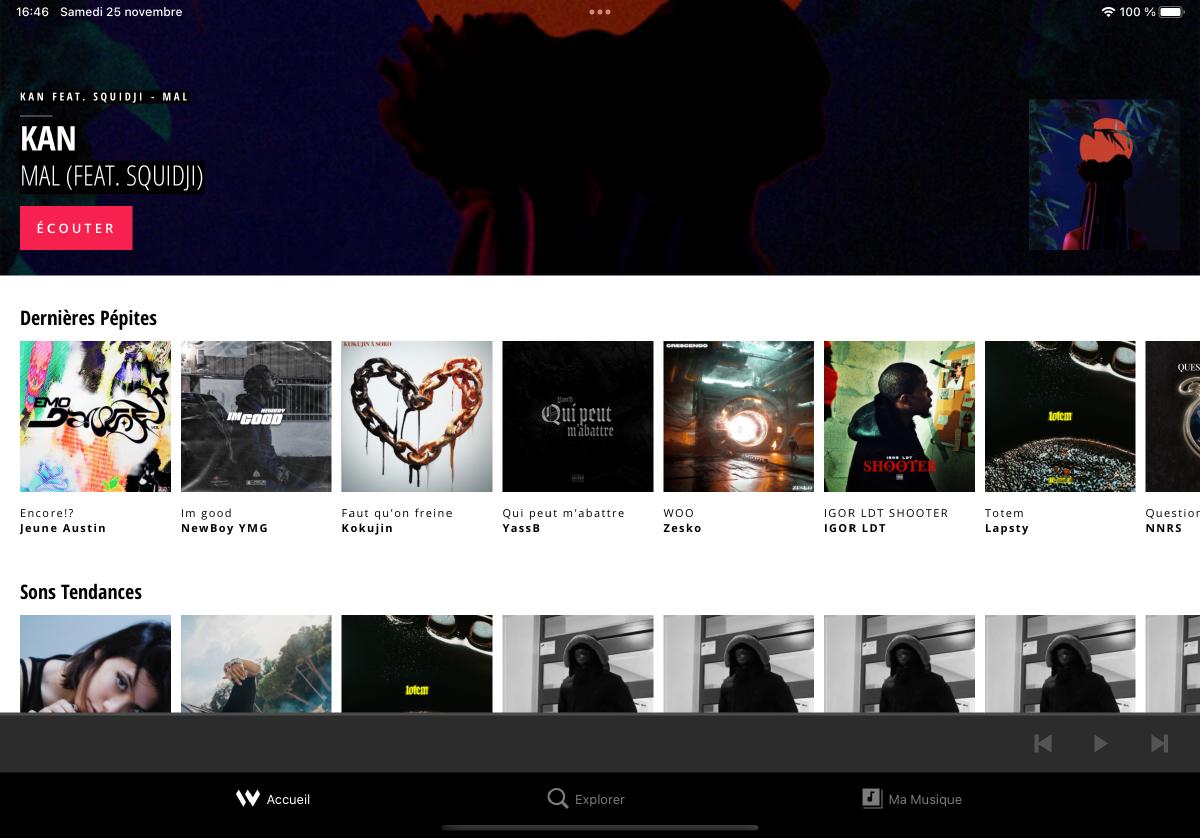 Vers la fin de 2019, nous avons initié la reconstruction complète de toute la plateforme, englobant un nouveau site web, une refonte du backend et de l’API en Ruby on Rails, ainsi que des applications mobiles natives pour iOS et Android. Bien que les applications offrent les fonctionnalités standard que l’on peut attendre d’un service de streaming sur les plates-formes natives iOS et Android, elles se distinguent en offrant une navigation fluide à travers le contenu précédemment exploré en mode hors ligne ainsi qu’une lecture des pistes pré-téléchargées. Le backend Rails permet quant à lui de gérer le contenu audio, permettant l’upload de sons wav ou mp3, voire même d’albums entiers en zip, préremplit les informations de chaque piste si elles sont disponibles dans les tags ID3, et convertit chaque son en un flux HLS avec 3 bitrates distinct, laissant les utilisateur•ices profite de leur musique même avec une connexion internet instable.
