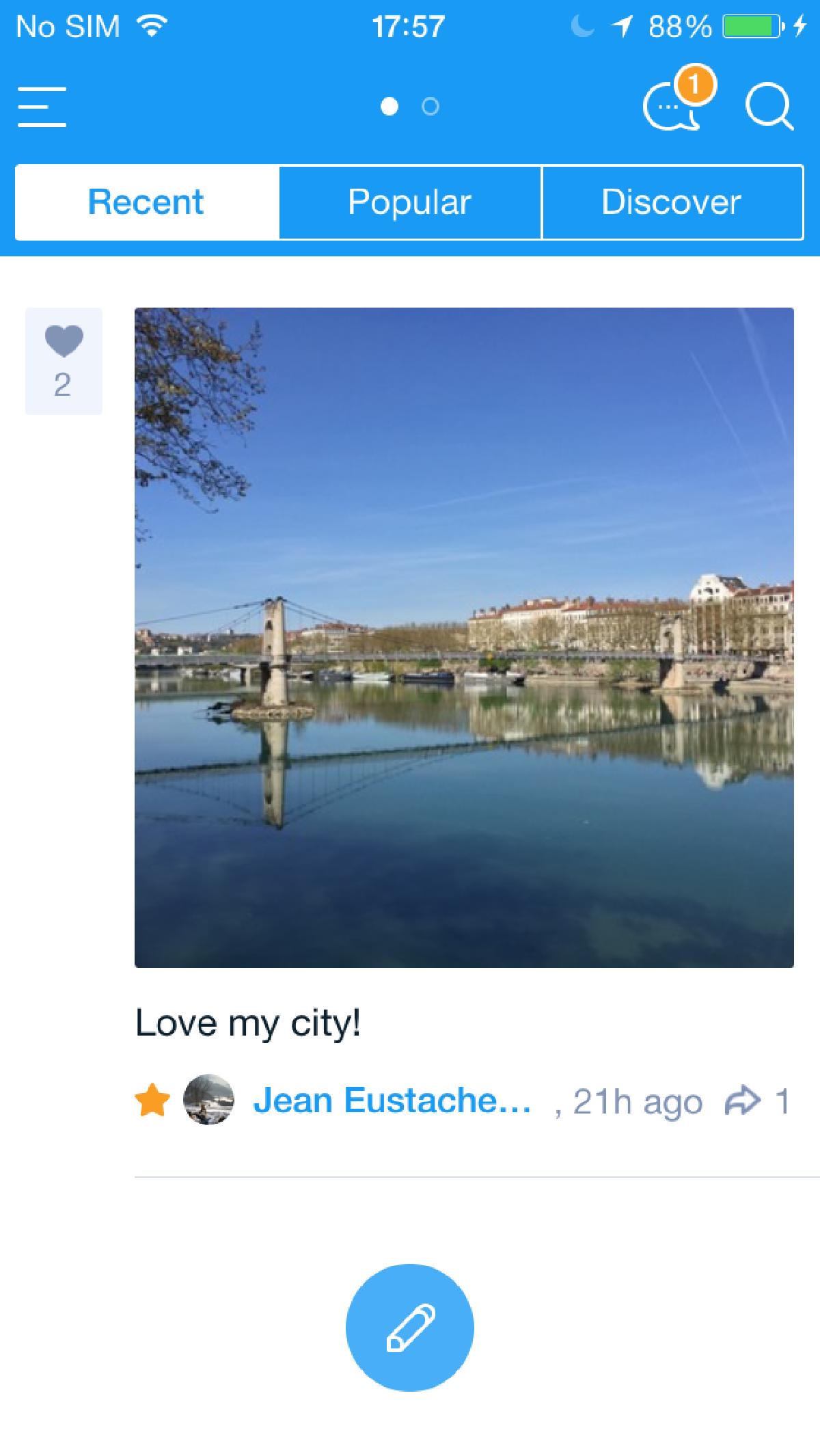 Jusque-là développée dans le but d’être un rolodex numérique, j’ai rejoint l’équipe de Yupp pour orienter l’application vers un réseau social de quartier. L’objectif est d’afficher exclusivement les publications des utilisateurs se trouvant géographiquement à proximité, ainsi que les publications les plus populaires du réseau.